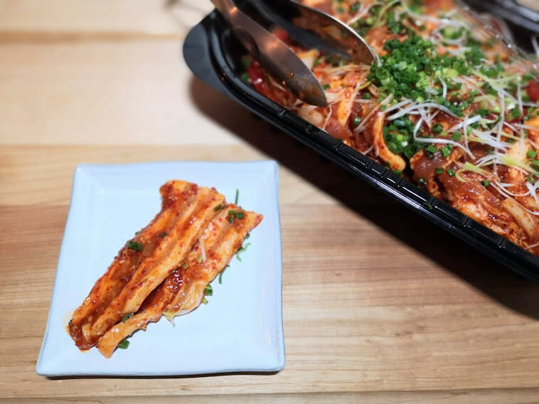 「あまりにも辛いと、子どもたちは食べられないからなあ……」と思いまして、コストコのデリカコーナーのスタッフの方に聞いてみたところ、 「見た目よりも、全然辛くないですよ」とのこと。