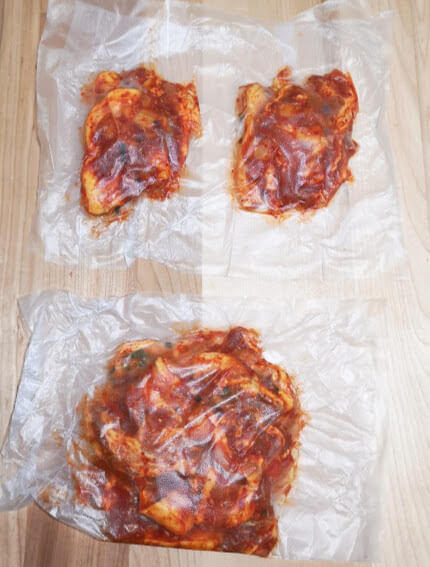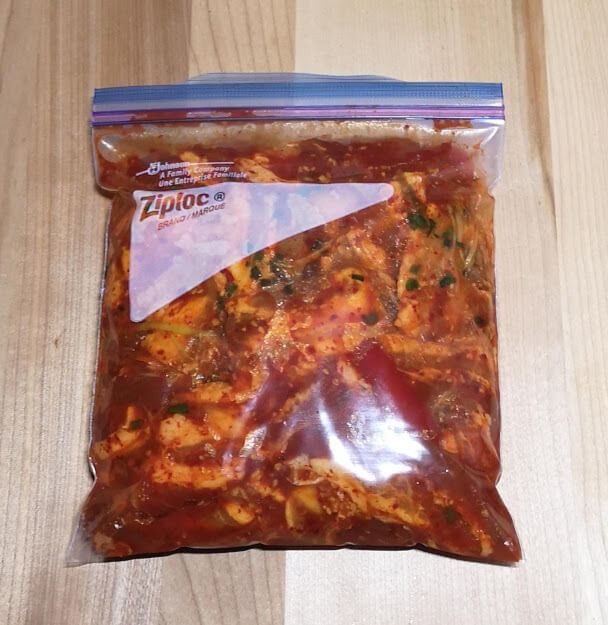多めの量で冷凍するなら、ジッパーバックにそのまま入れて空気を抜いて冷凍しましょう。 解凍は、冷蔵庫に移してゆっくり解凍がベスト!食べたい日の朝冷凍庫から冷蔵庫に移しておけば、夕食前に焼くだけでメインが完成ですよ!