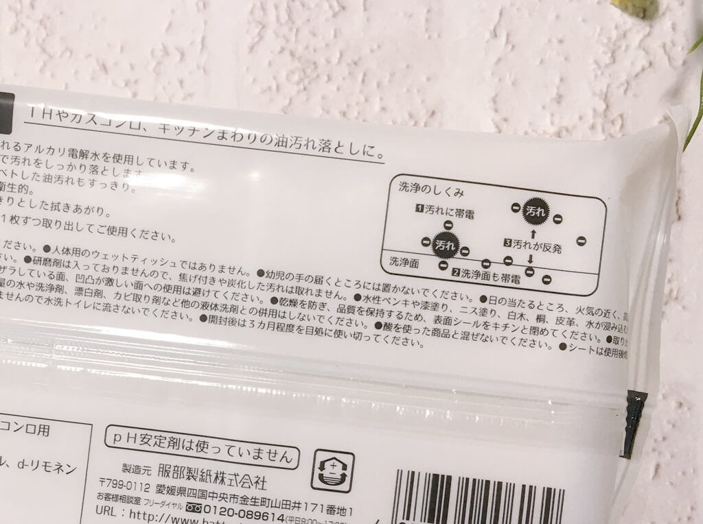 といいつつ……、電解水って聞いたことはあるけど、いまいちその効果を分かっていなかったのですが、パッケージによると洗浄面や汚れに帯電することで、汚れが反発して浮きあがってくるようですね。