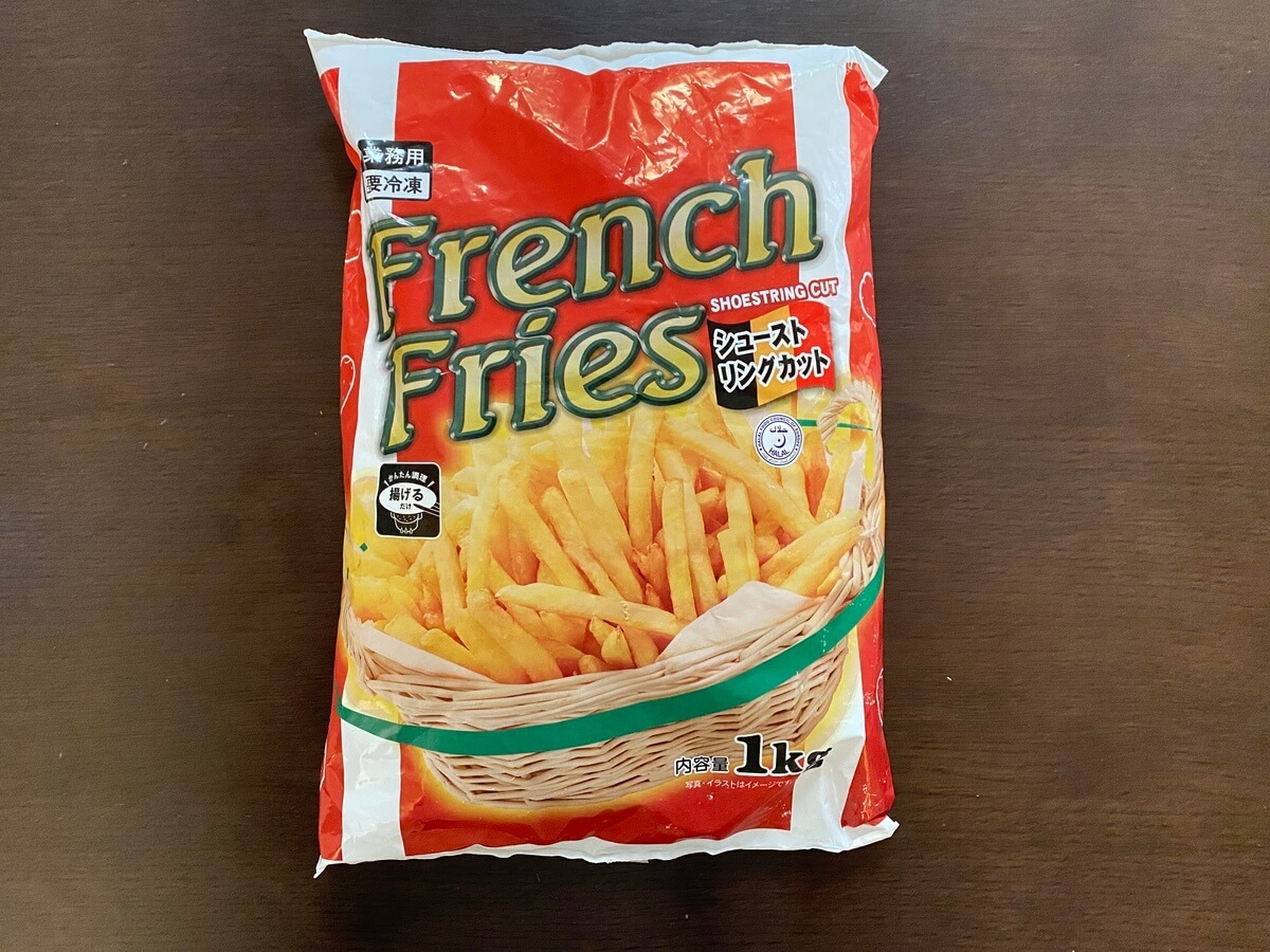 まずは定番、フライドポテト!わが家は業務スーパーの「フライドポテト 1キロ 195円(税別)」を購入しています。