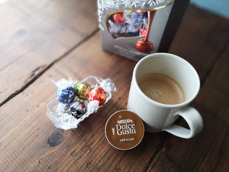 絶品マリアージュ①大人のチョコでご褒美!「リンツ リンドール×ドルチェ グスト カフェオレ」