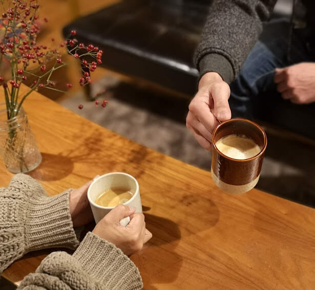 ケーキを囲みながら、自分のお好みのコーヒーで、口の中の甘さや苦味を調節!こうした思い思いの楽しみ方ができるのも、コーヒーの濃さを選べる「ミニミー 」のよさの一つです。