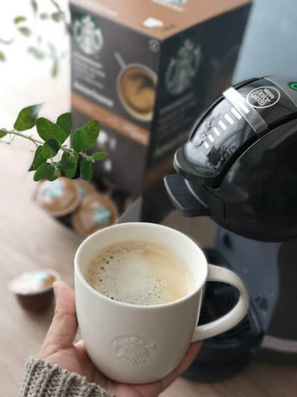 「スターバックス ラテ マキアート」は、ミルクカプセル、コーヒーカプセルの順で2つのカプセルを使います。スターバックスのお店で味わうような、パンチのある濃さと苦味をしっかり引き出し、ふわふわのミルクが混ざり合って濃厚。