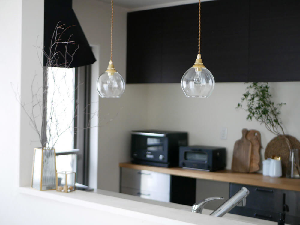 「リューズガラス ランプシェード」なら、雑多になりやすいキッチンにぴったりな奥行のある透明感と清潔感のあるガラスが◎。主張しすぎないけれど、見る人の印象にのこる存在感が、品のいいアイテムです。