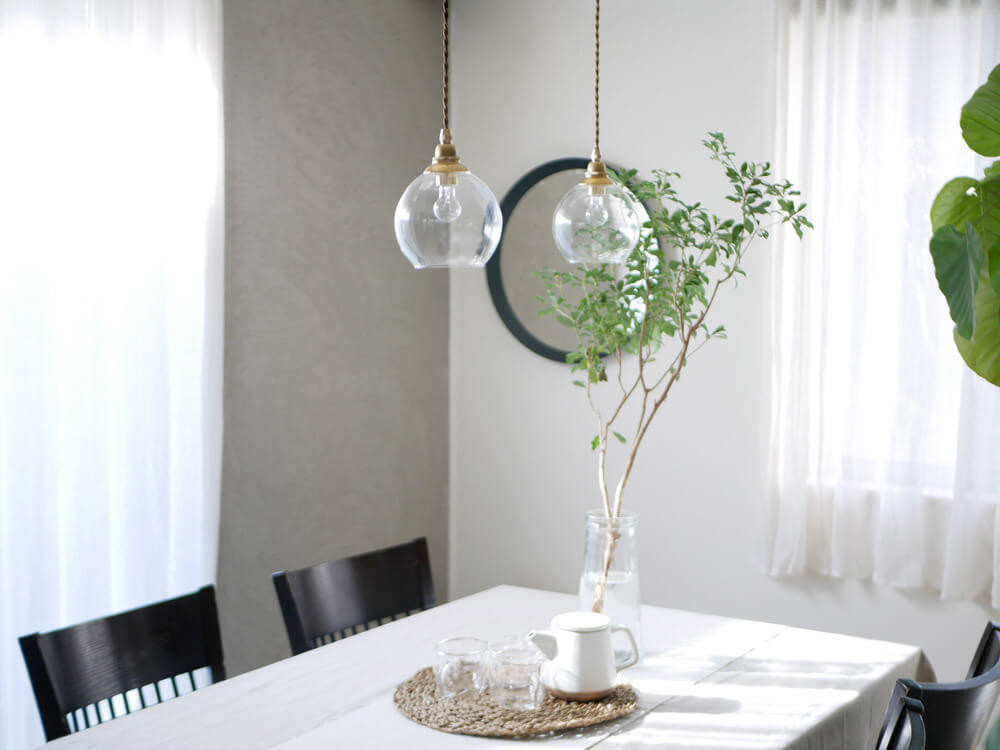 丸みのあるフォルムと柄や色がないガラスの間接照明は、どんなインテリアにもおしゃれに馴染んでくれるのが魅力。なので、照明単体の存在感より、お部屋との調和を大事にしたいかたにオススメです。