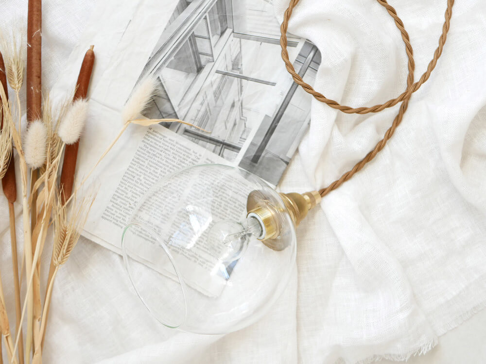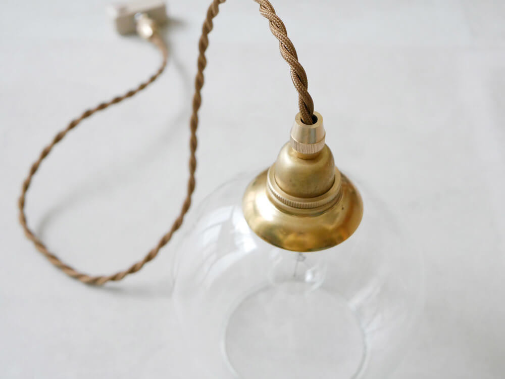 丸みを帯びたリューズガラスのシェードとツイストコードが空間と馴染むポイントで、真鍮のソケットが深みと味わいを演出してくれます。
