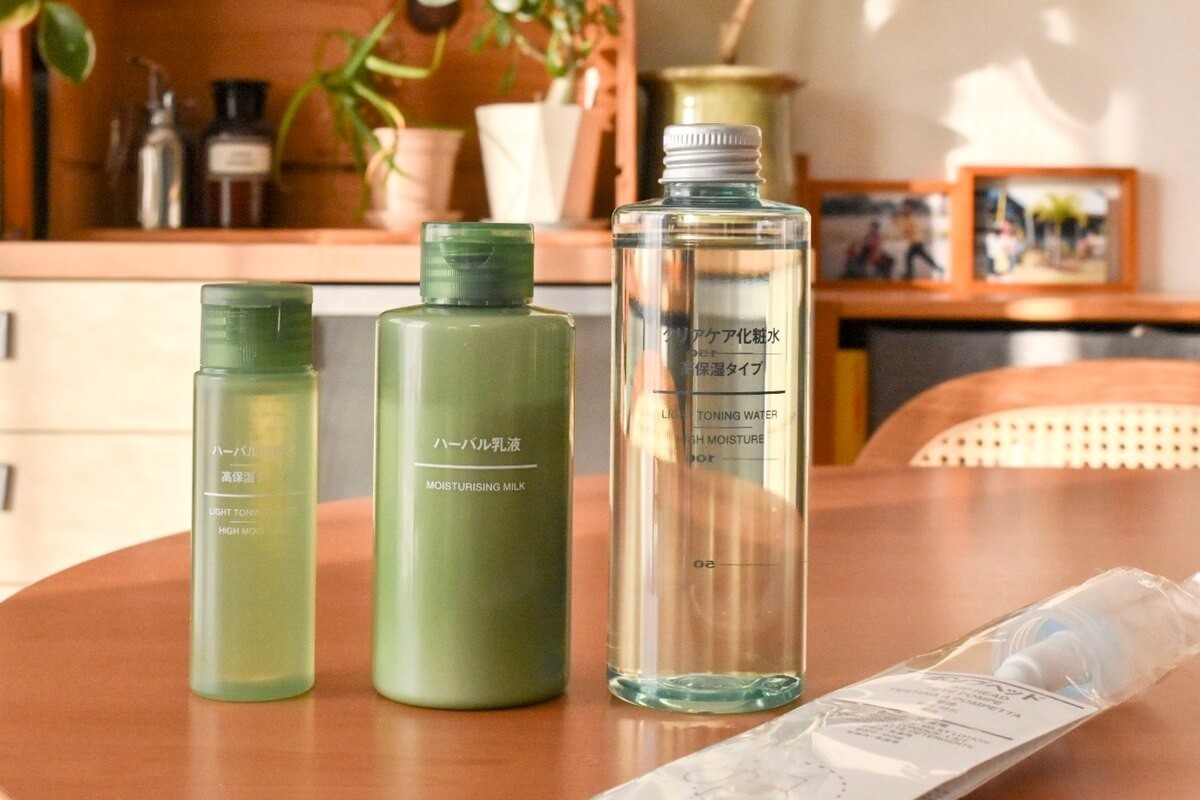 化粧水には岩手県釜石の天然水が使われていて、アルコール・パラベンフリー、合成香料無添加、無着色、無鉱物油など、品質の高さとコスパの良さから老若男女問わず人気の無印良品のスキンケア用品。