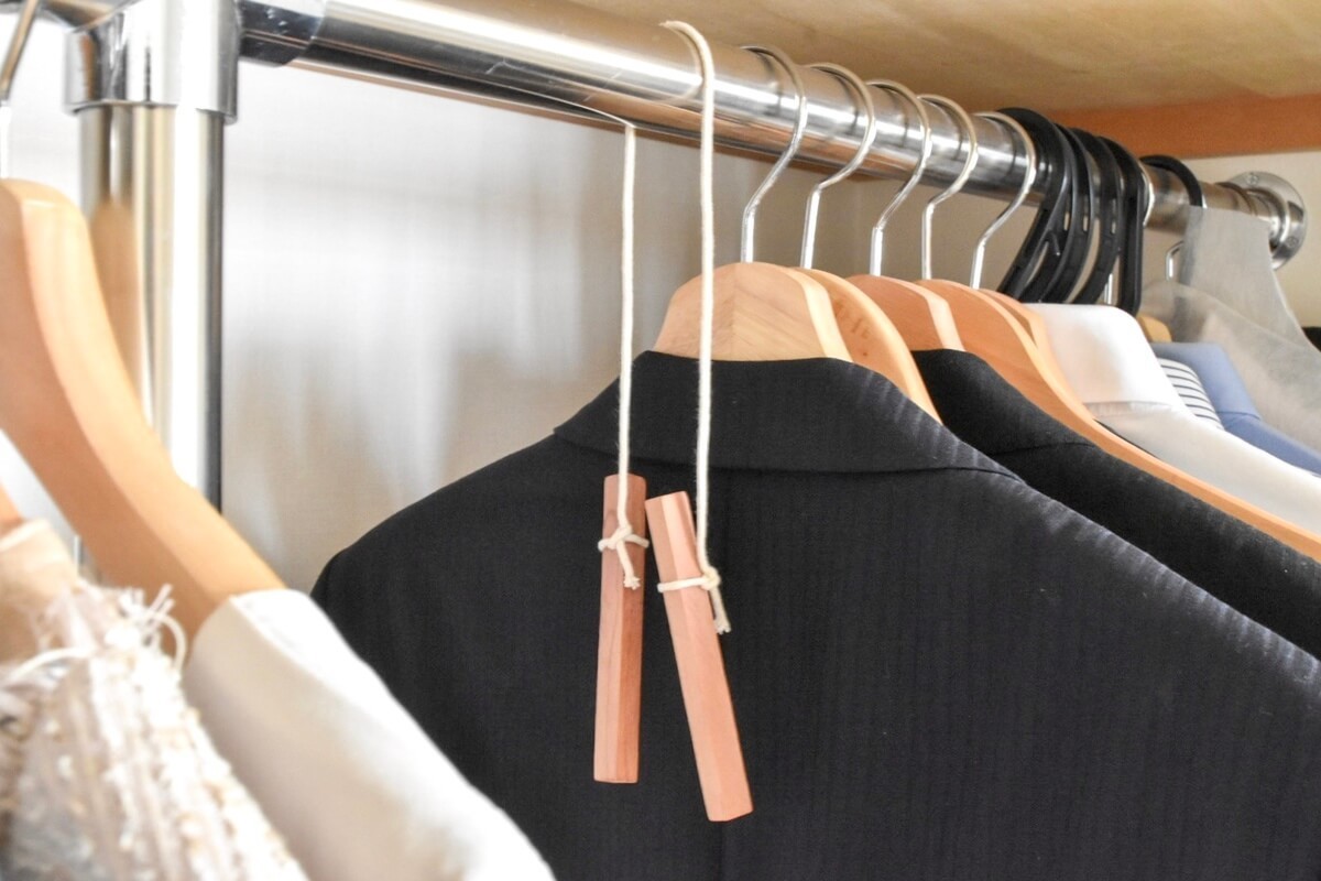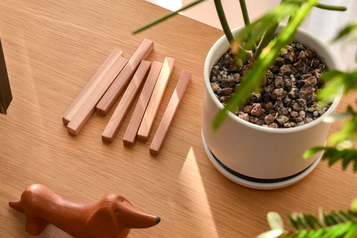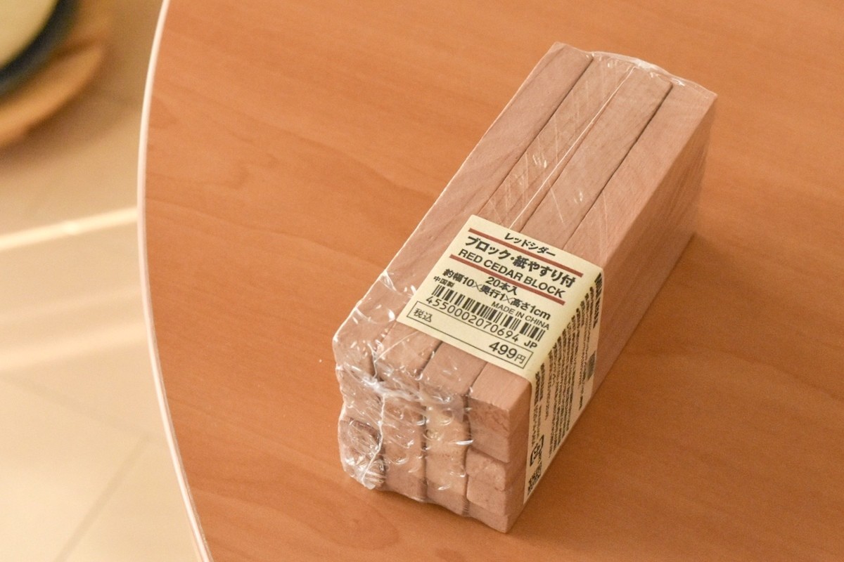 わが家は衣替えのタイミングでレッドシダーブロックを窓辺で軽く乾燥させ、紙やすりで削ってから戻すようにしています。