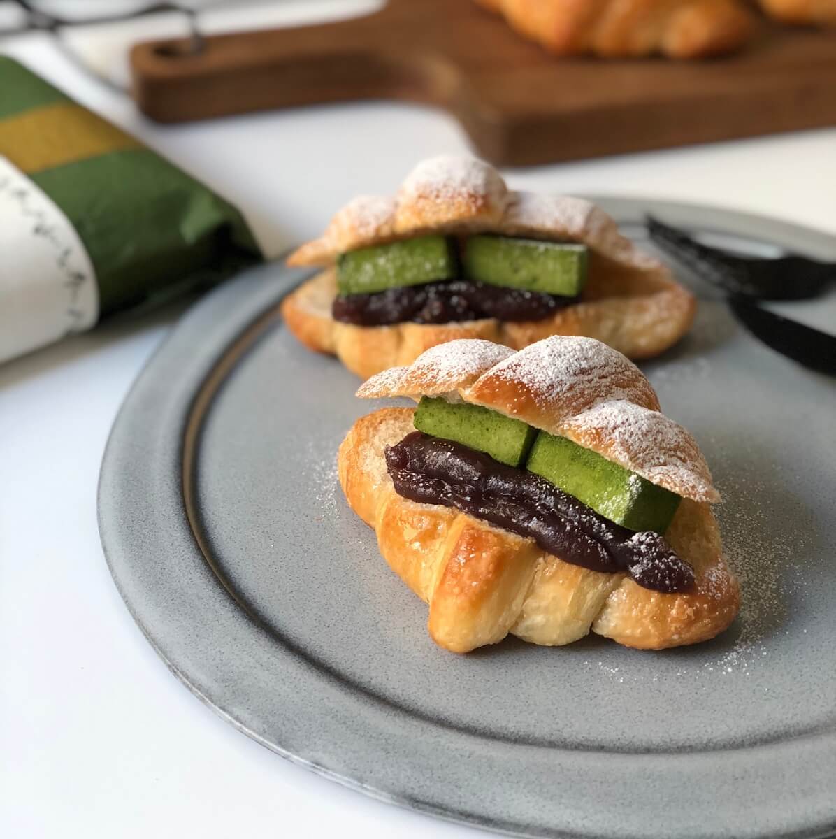 クロワッサンのサクサク感とバターの香りをプラスして、朝食にもぴったりな抹茶小倉トーストとして。