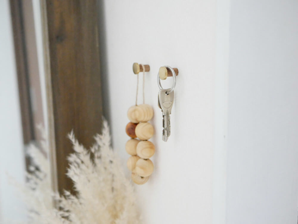 また、真鍮だけのピンなら今まで目にしてきましたが、それに加えシーシャムウッドの天然木がプラスされたので、横から見るとさらに素敵です。天然木のお陰で温かみと上品さも感じられ、壁際の空間を格上げしてくれます。