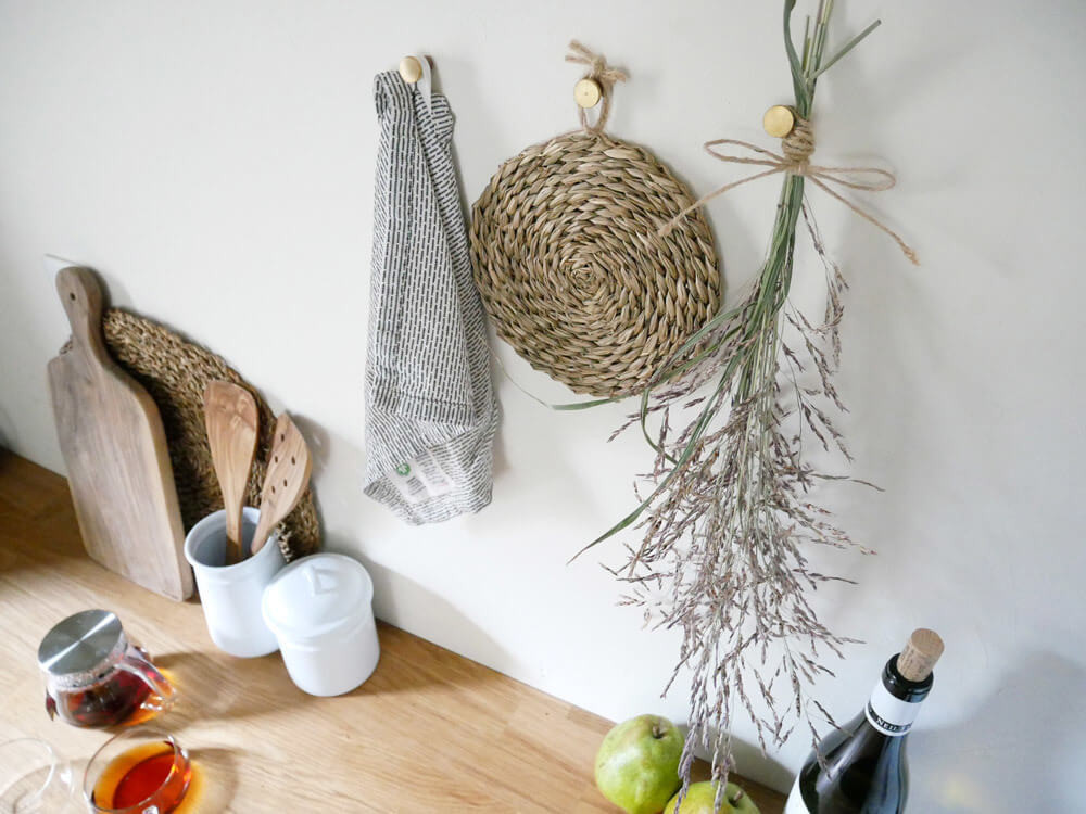 布巾や鍋敷き、エプロンやドライフラワーなど……。正直何を掛けても、掛けなくても“サマ”になるピンフック。