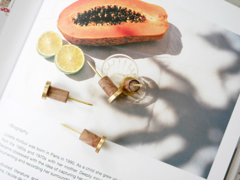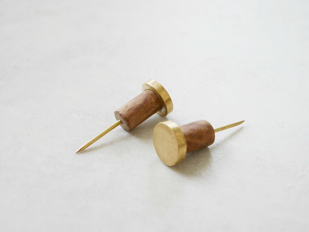 今まで目立たせたくなかったプッシュピンも、この「BRASS&WOOD ウォール ピンフック」なら敢えて見せたくなりますね。