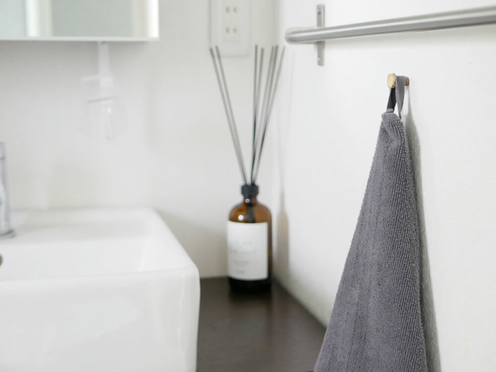 ループ付きのフェイスタオルを滑り落ちることなく掛けられるので、日常使いにも便利です。