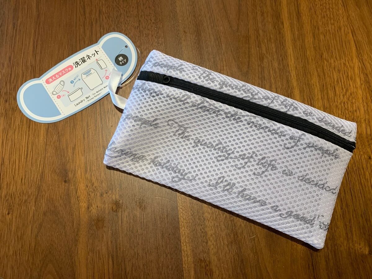 名前の通り、洗濯して何度も使用可能なマスクを洗う際に使う洗濯用ネットです。こちらの柄が入ったタイプの他に無地のタイプもありました。