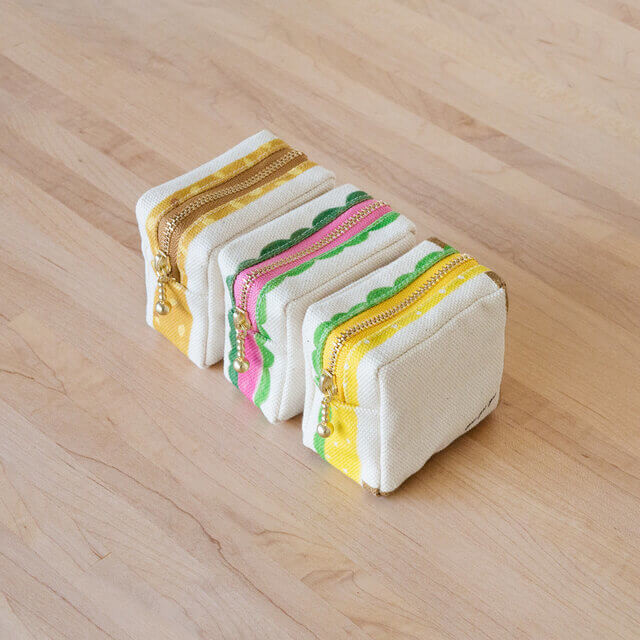 サイズは縦横7cm、マチが4cmでファスナーが12cmなので小さめバックにも入ります。他と被りにくいデザインのサンドイッチポーチは、形違いのポーチもありますので、気になる方はチェックしてみてくださいね。
