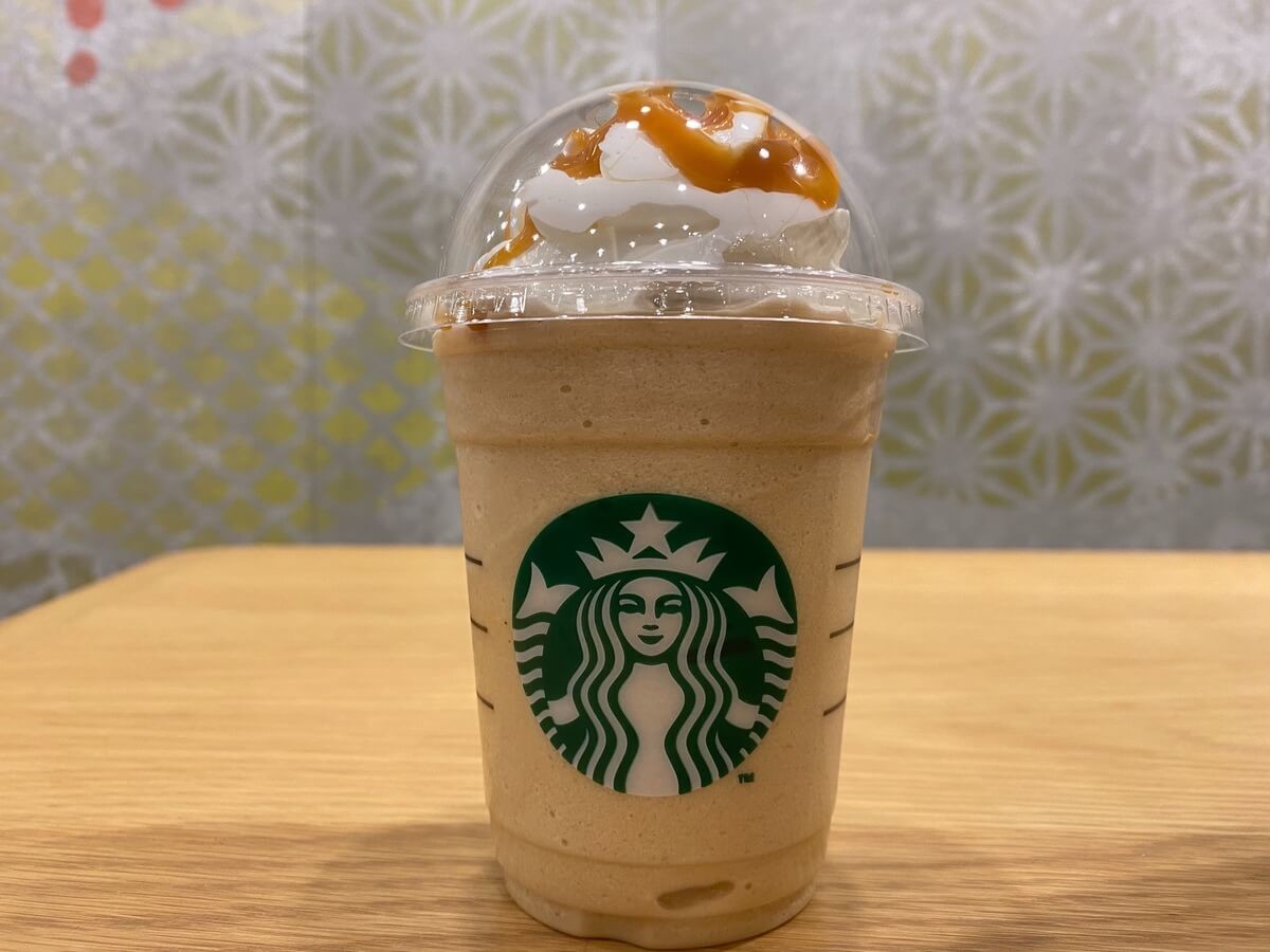 キャラメルフラペチーノ®︎は、コーヒーベースのフラペチーノ®︎にキャラメルシロップを追加し、上にホイップクリームやキャラメルソースをトッピングして作られたドリンクです。
