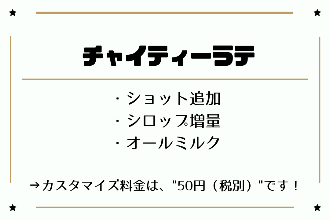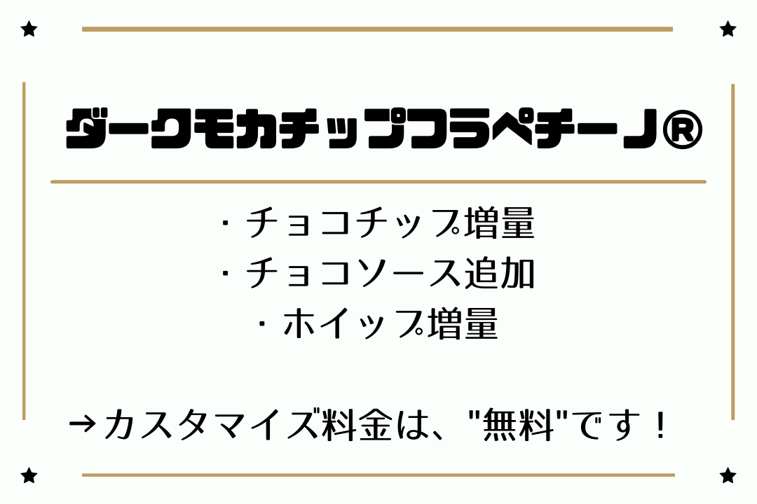 注文しやすいように、見せるだけで注文できるカスタマイズ表を記載しておきますので、ぜひ参考にしてくださいね。