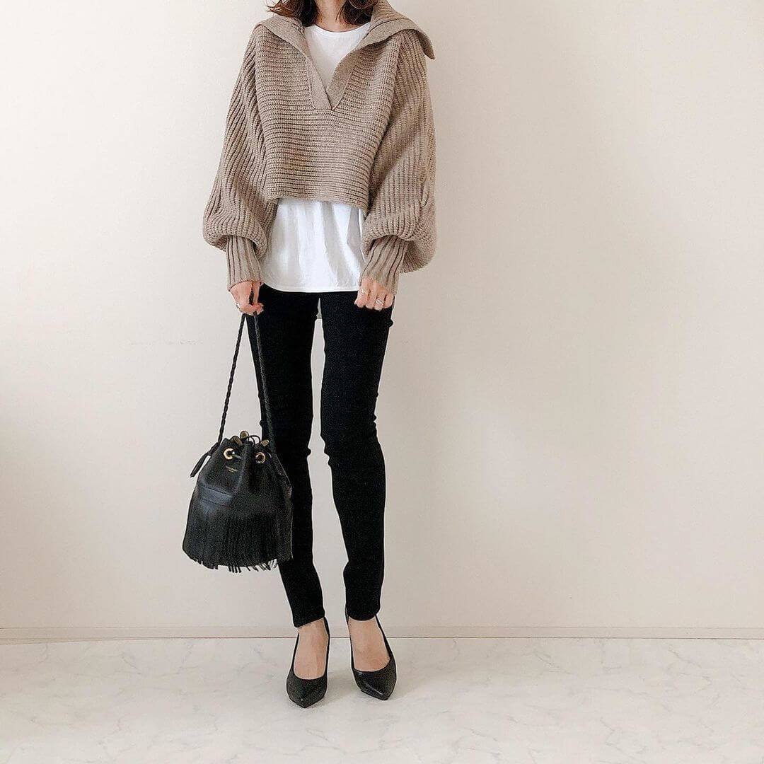 ボリューミーなフォルムとコンパクトな着丈のニットなので、いつものコーデにプラスするだけでもグッと可愛く見せてくれます。