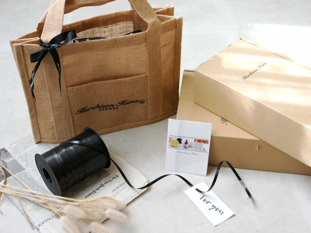 ジュートで作られたトートバッグはナチュラルでマーチソンヒュームの雰囲気にぴったり。ポケットに是非、小さなハーブやブーケを挿して贈ってみてくださいね♪