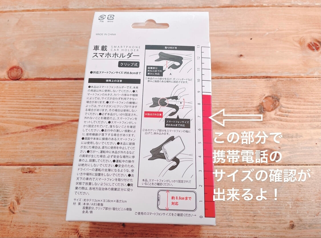 粘着テープで貼るタイプではないので、ダッシュボードなどが汚れる心配はありません。スマートフォンサイズは約8.8cmまで対応出来ます。