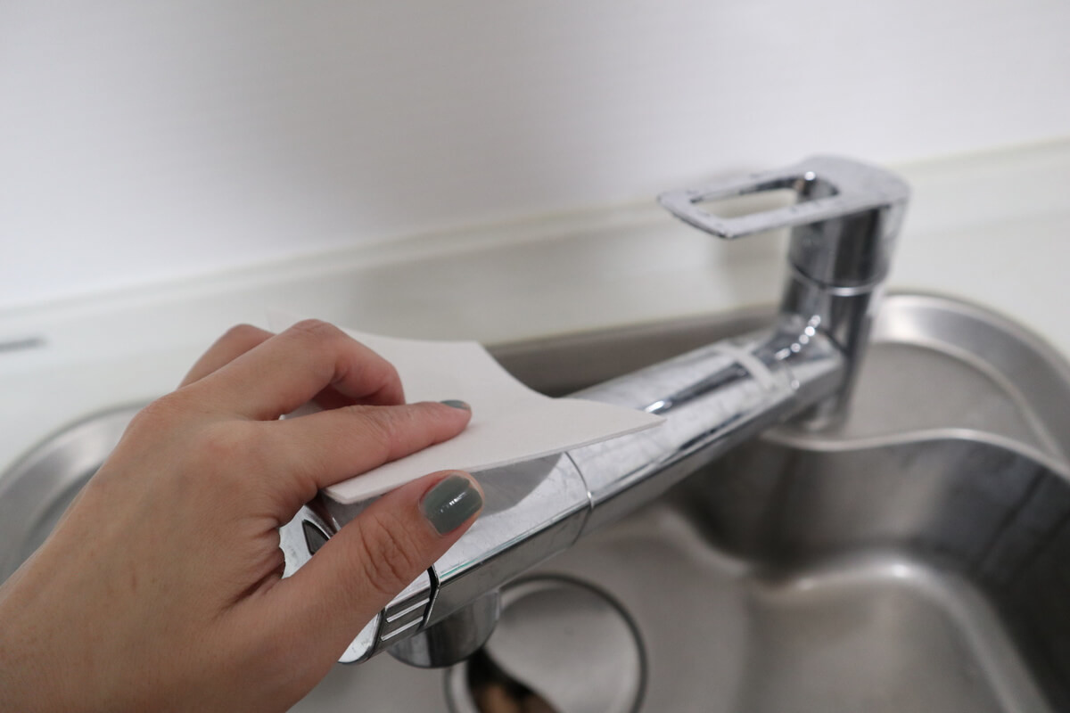ピカピカ!柔らかく、薄いロスなので蛇口の細かいところにもフィットして掃除しやすい。