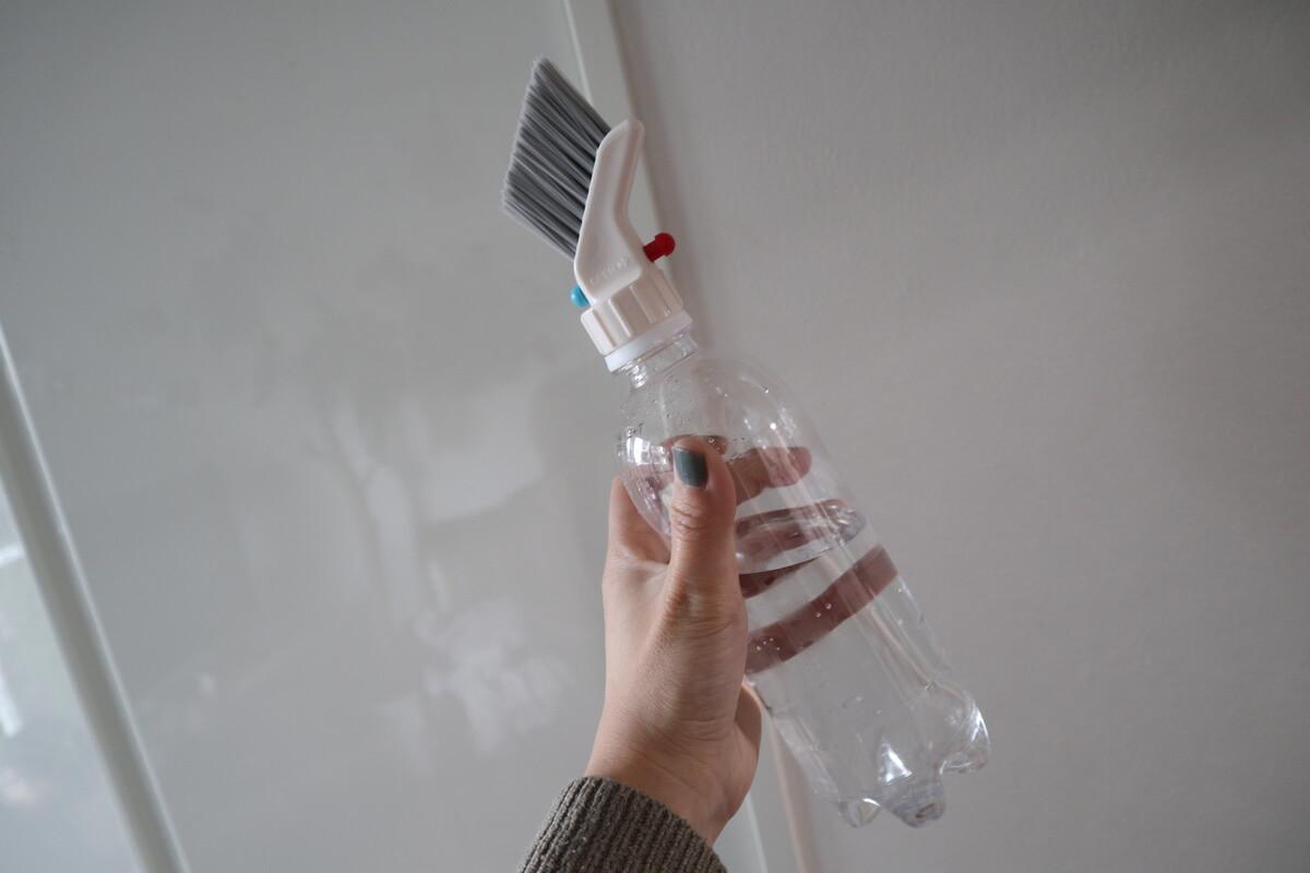 ペットボトルに水を入れて、スリムブラシを装着します。