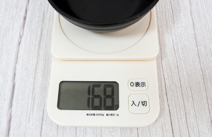 次に、自宅にあった小鉢の重量を測ってみると、168gでした。