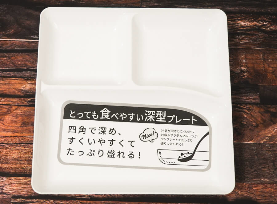 高さが3cmあるランチプレートですので、汁物を入れても漏れませんし他の食材と混ざらないのが魅力的。また、電子レンジや食洗機にも対応していて、お手入れラクラクなのもいいですね。