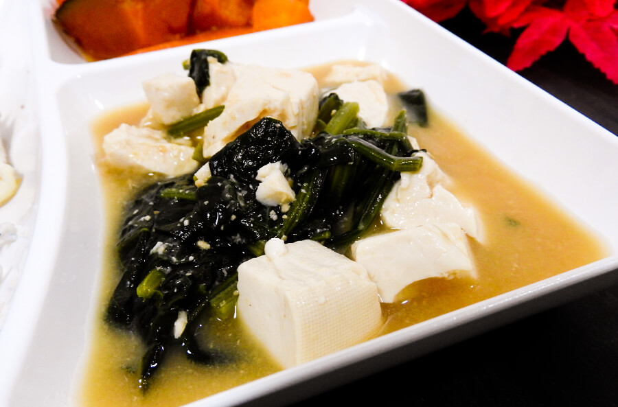 汁物代表例ということで、みそ汁を入れてみました。他の食材と混ざらない……!ごはんものと汁物を同時に入れるときにも助かりますね。息子も喜んで使っています。便利で機能的なものが好きなちょっと変わった息子は「高さがあるランチプレートを作った人はすごい」と感心していました。
