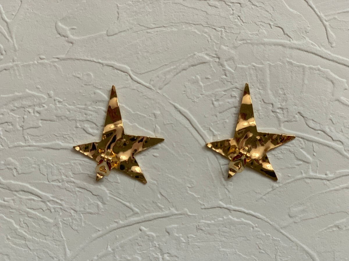 ダイソーで購入したイヤリング。裏面の記載を見ると「材質:鉄・真鍮・銅メッキ」とあります。