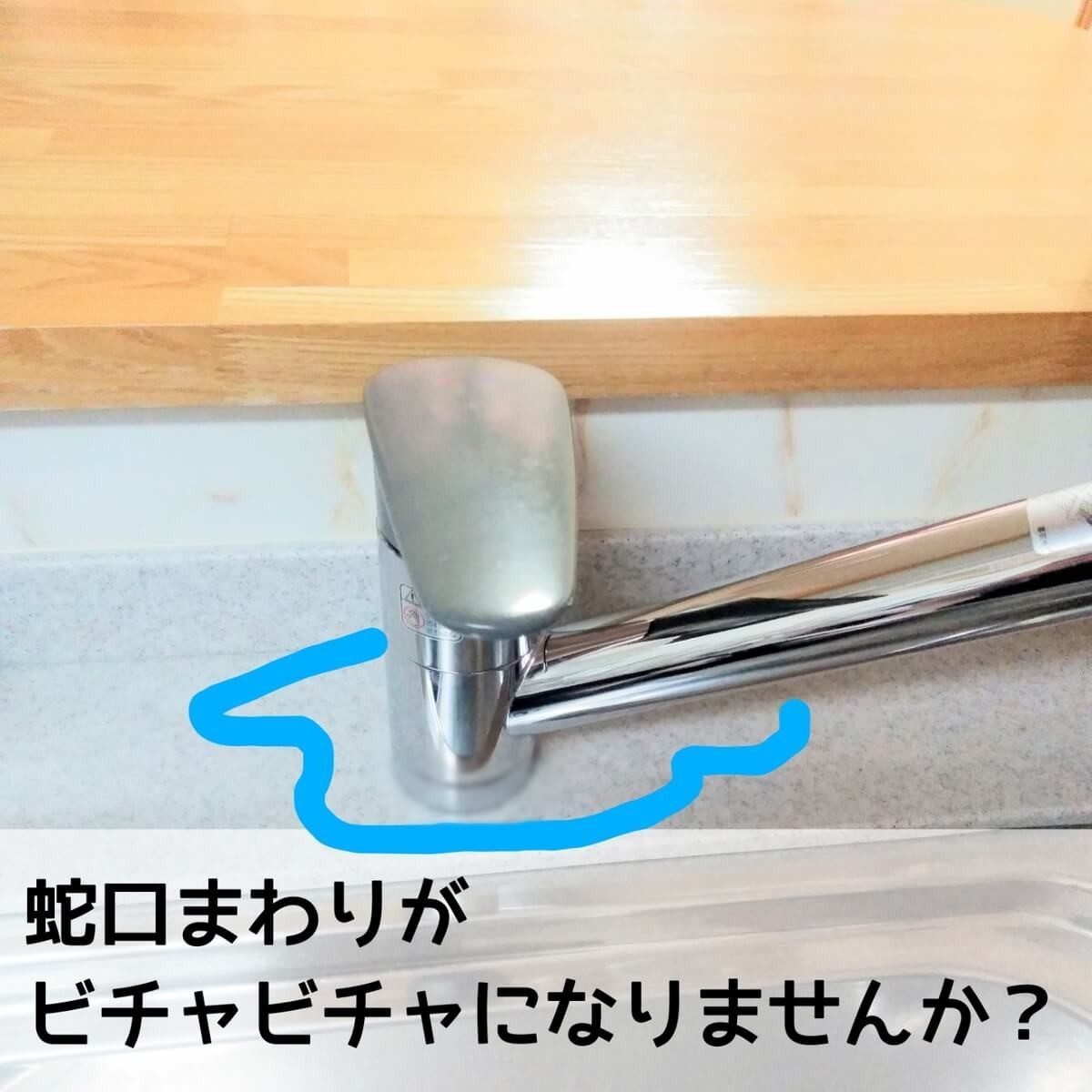 どちらの蛇口もレバーハンドルを上げ下げするタイプで、濡れた手で触ることによって水が伝って下まで行き、蛇口まわりがビチャビチャになるんです。