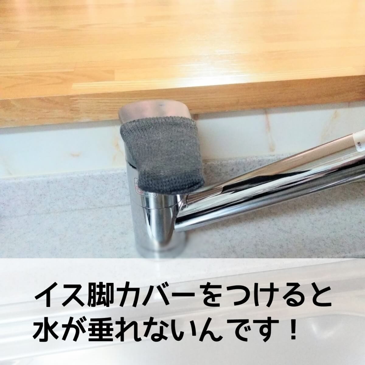 ニットイス脚カバーを被せるだけのことで、蛇口のビチャビチャ問題が劇的に改善されました!