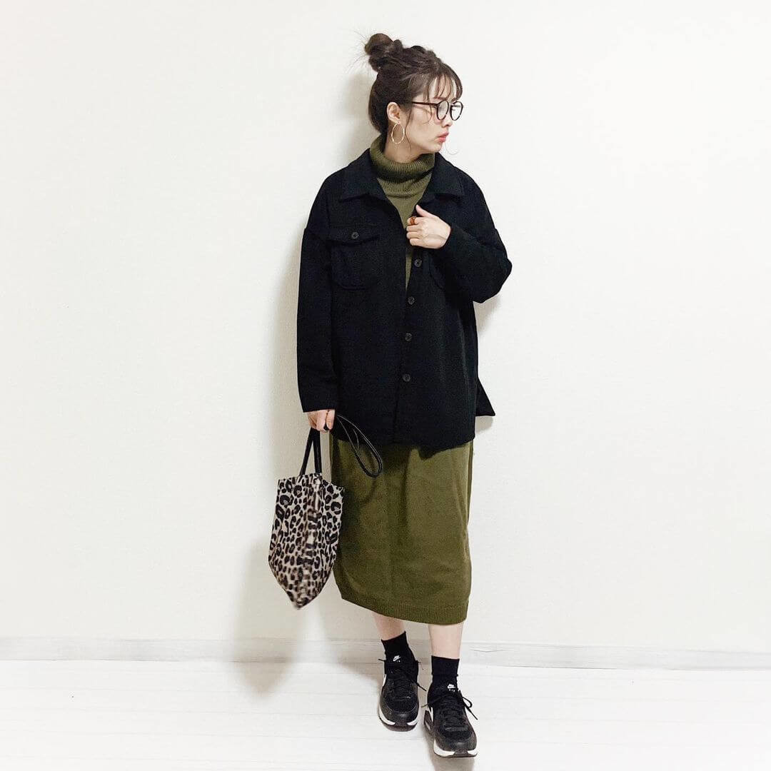 【レオパード】ニットワンピースと合わせた大人カジュアルコーデ
