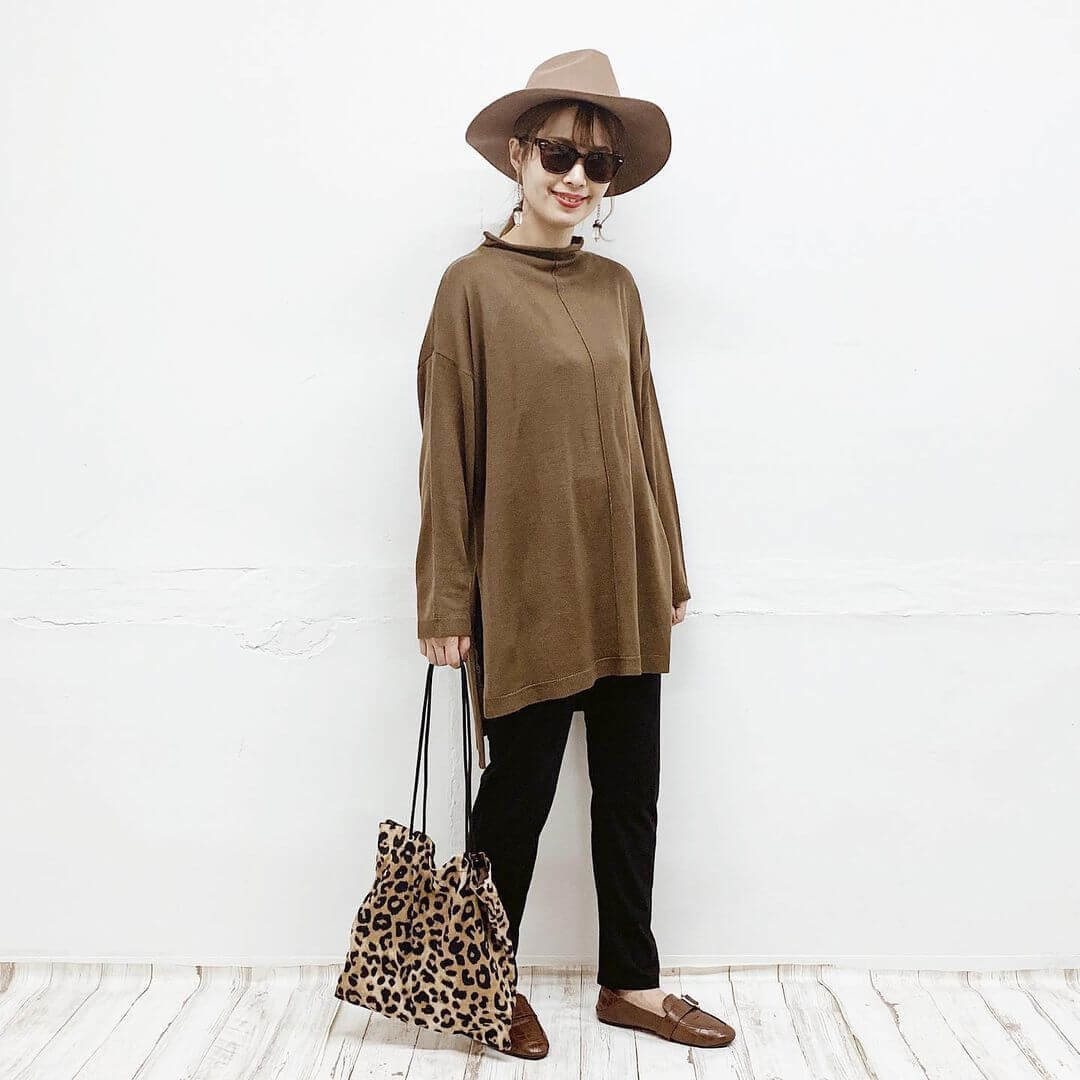 【レオパード】ビッグトップスを着こなすカフェオレコーデ
