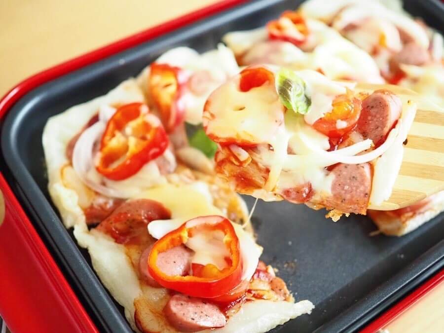 また、余ってしまったお餅は半分にカットしてホットプレートに並べて加熱すると餅ピザに!