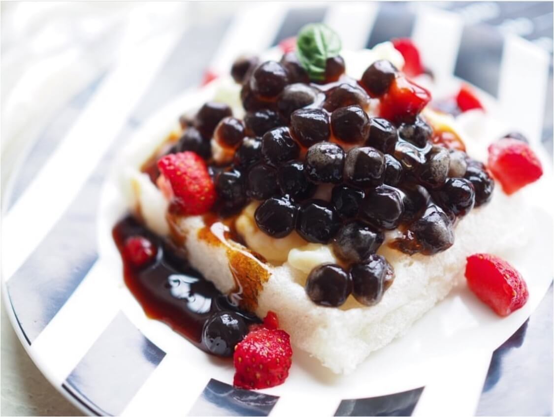 業務スーパーのタピオカをかければWもちもち食感が楽しめますよ♪