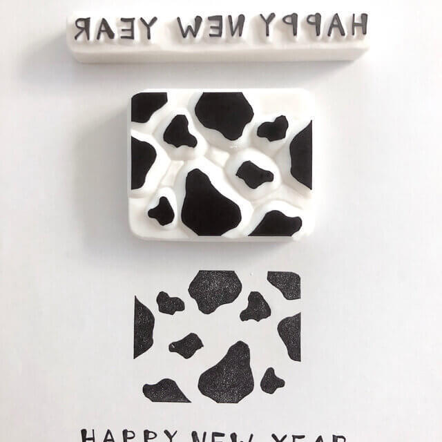 モノトーンのウシ柄が大人っぽい!ウシ柄&文字ハンコセット