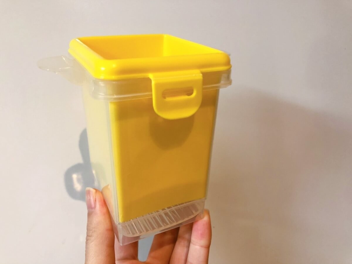 ここで、黄色い容器の出番!上から黄色い容器を入れて、ゆっくりと押します。