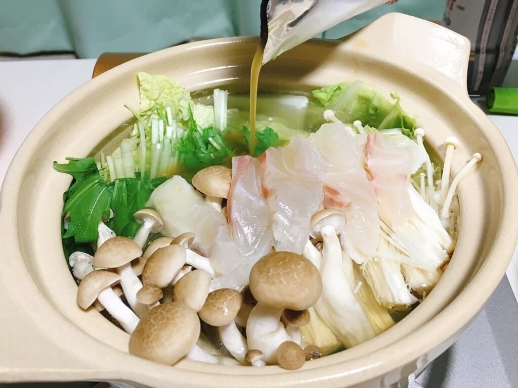 3種類の鍋つゆの中から、今回は“鯛塩生姜味”を購入しました。さっぱりとした鯛のおだしで野菜と魚をた~っぷり食べたいと思います!
