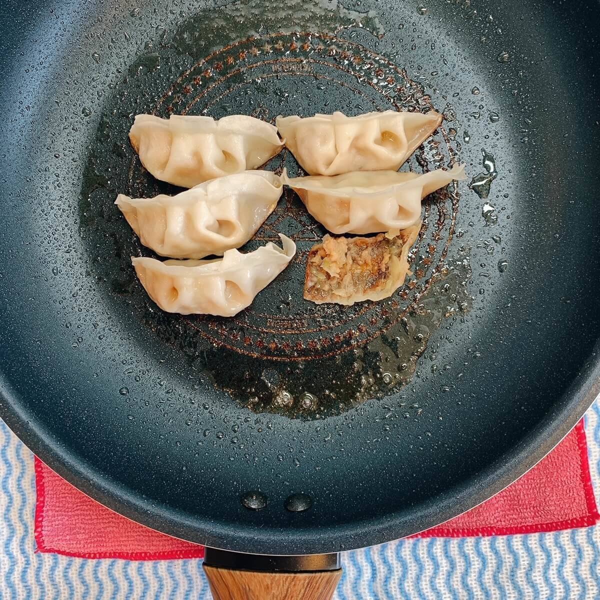 布巾で冷ますコツで、冷凍餃子は上手に焼ける