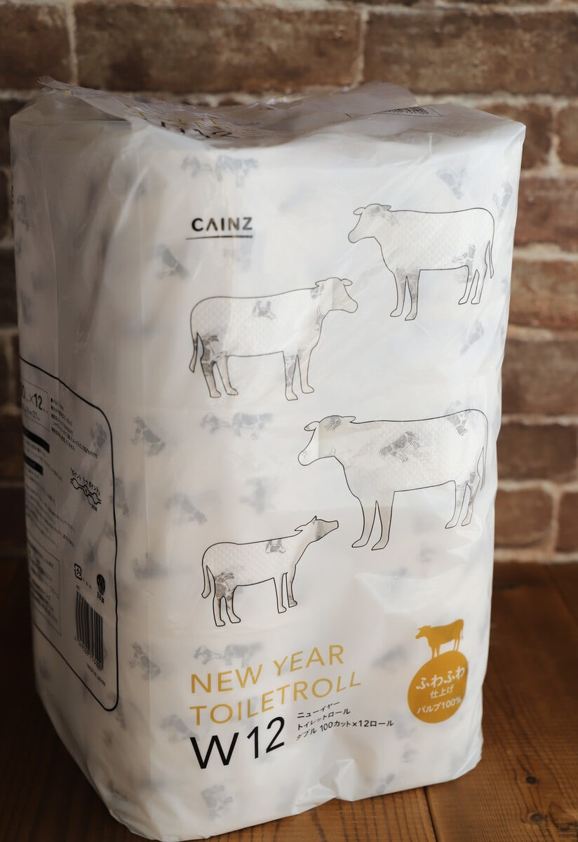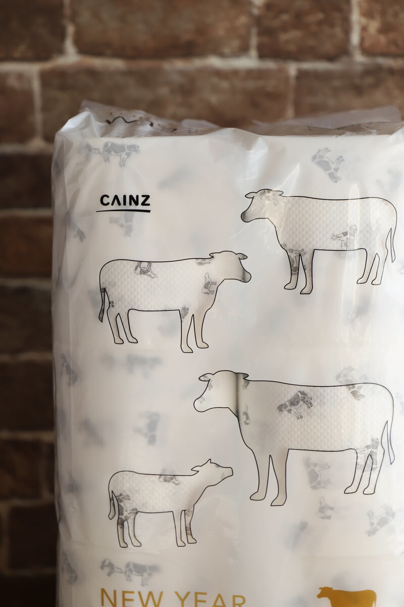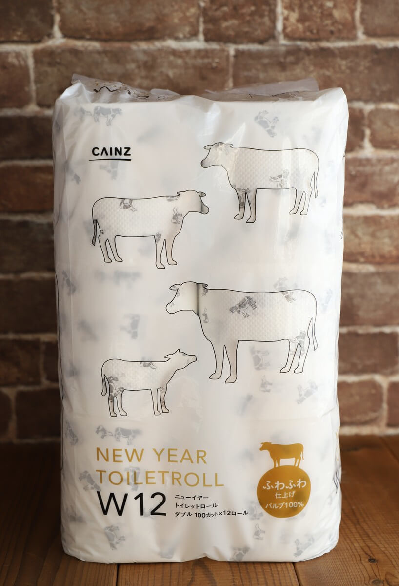 来年の干支、牛の柄が入ったトイレットペーパーです。