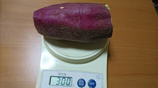 今回、さつまいもは中くらいの大きさのものを1本(300g)使用しました。2合の米に対して、さつまいもが少し多めでしたが、お好みの分量でよいでしょう。