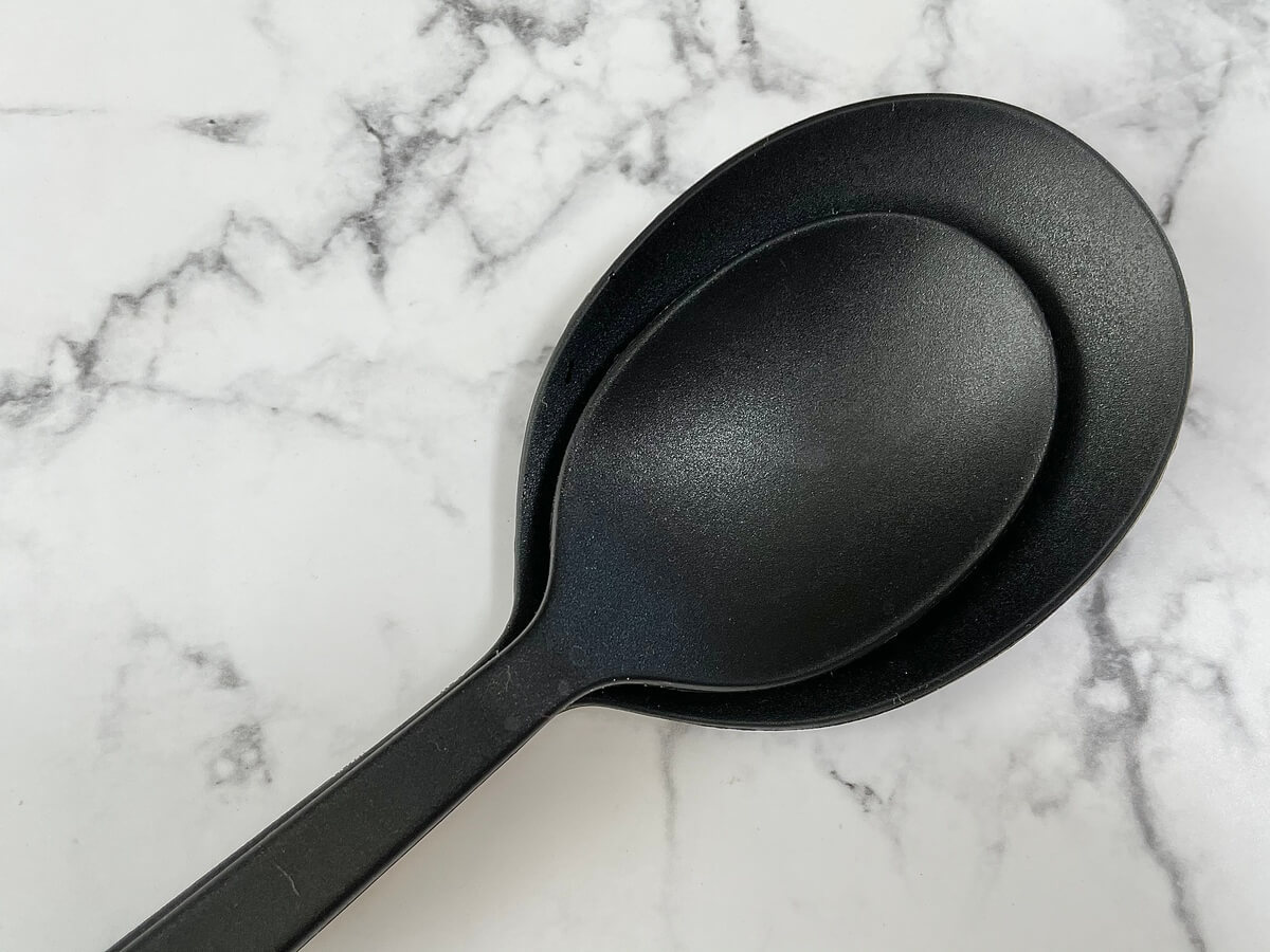 スプーン型になっていて、フライパンや鍋などの調理器具を傷つけにくいのも特徴です。