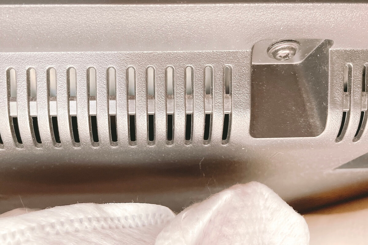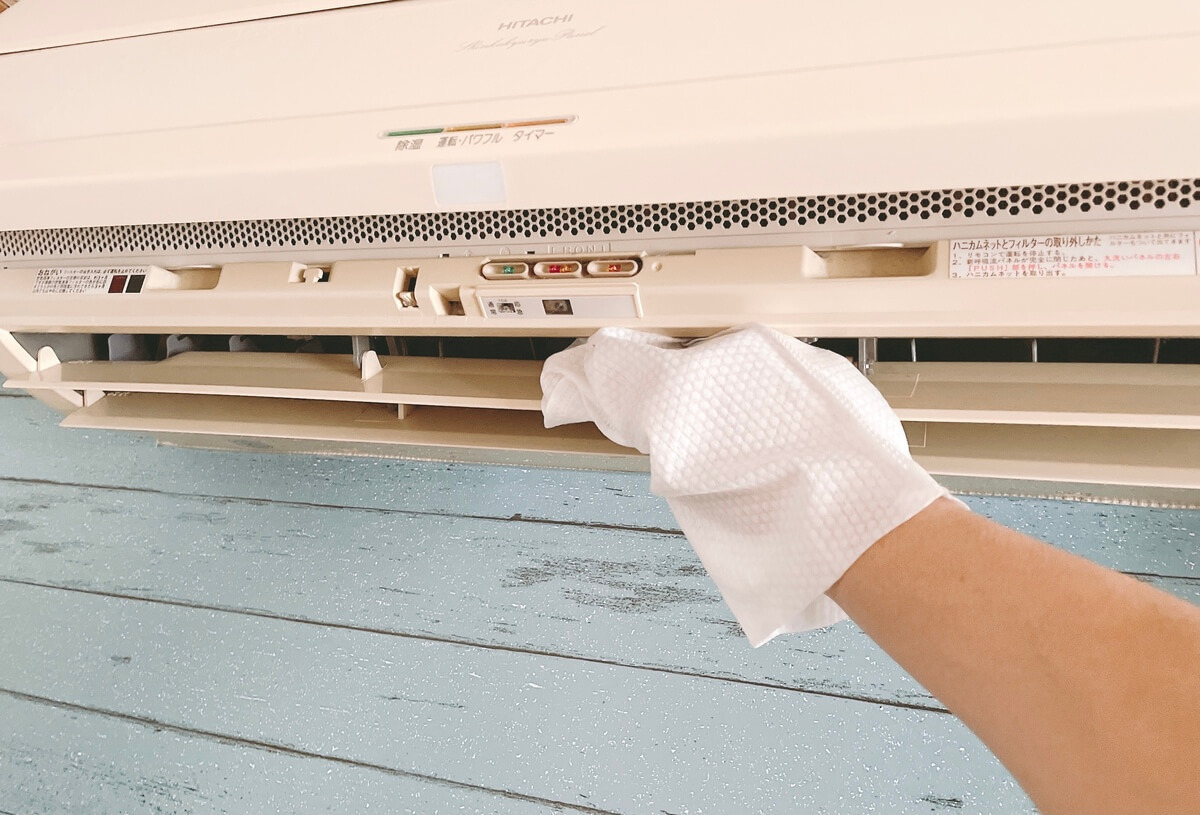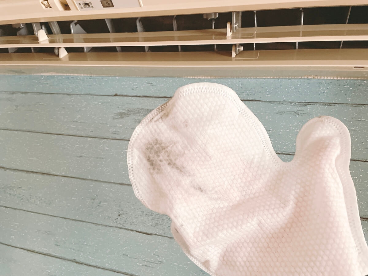 エアコンの吹き出し口を拭いてみました。ミトンをはまたまま指で細かな所も拭けるので溝も拭きやすいです。