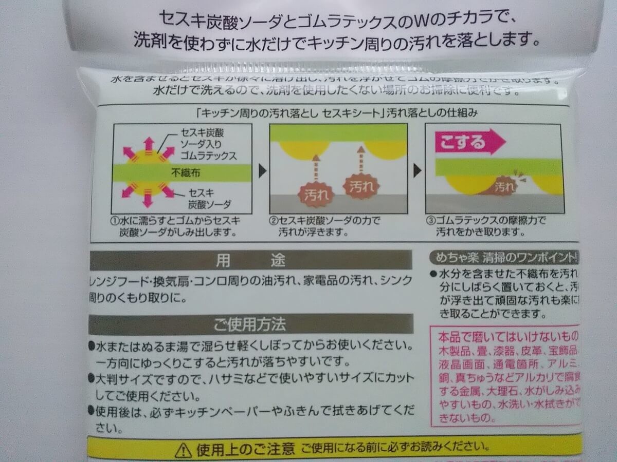 重曹シートはしっかりした素材なので、ガシガシ掃除してもヘタりにくいのが長所です。