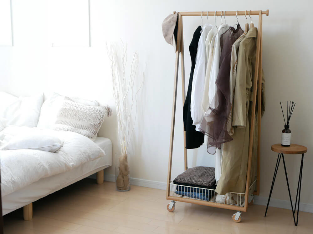 ワンルームに超おすすめ!バスケット付き「コートハンガー」が万能すぎる収納力を発揮