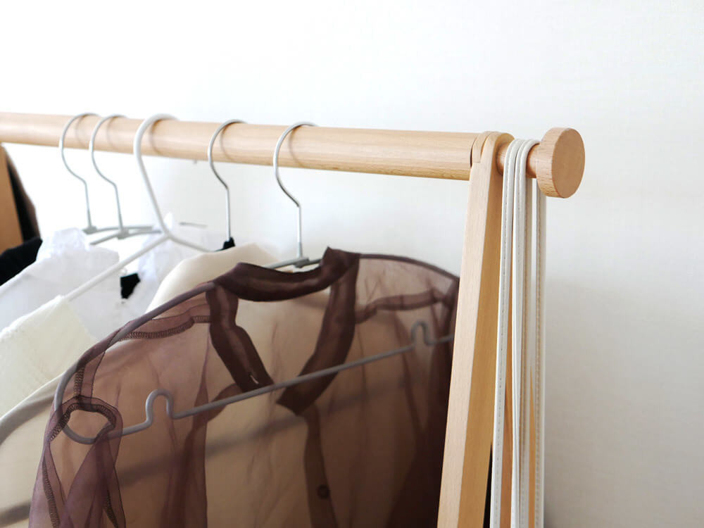 柔らかな木目と色合いが魅力の「コートハンガー」。バスケットの優しい色味とも相性が良くさらにナチュラルさが増しています。