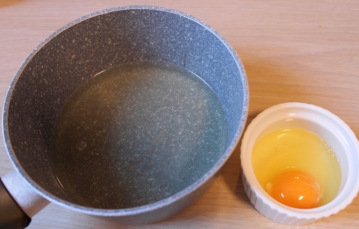 用意するものは、鍋にいれたスープと卵です。