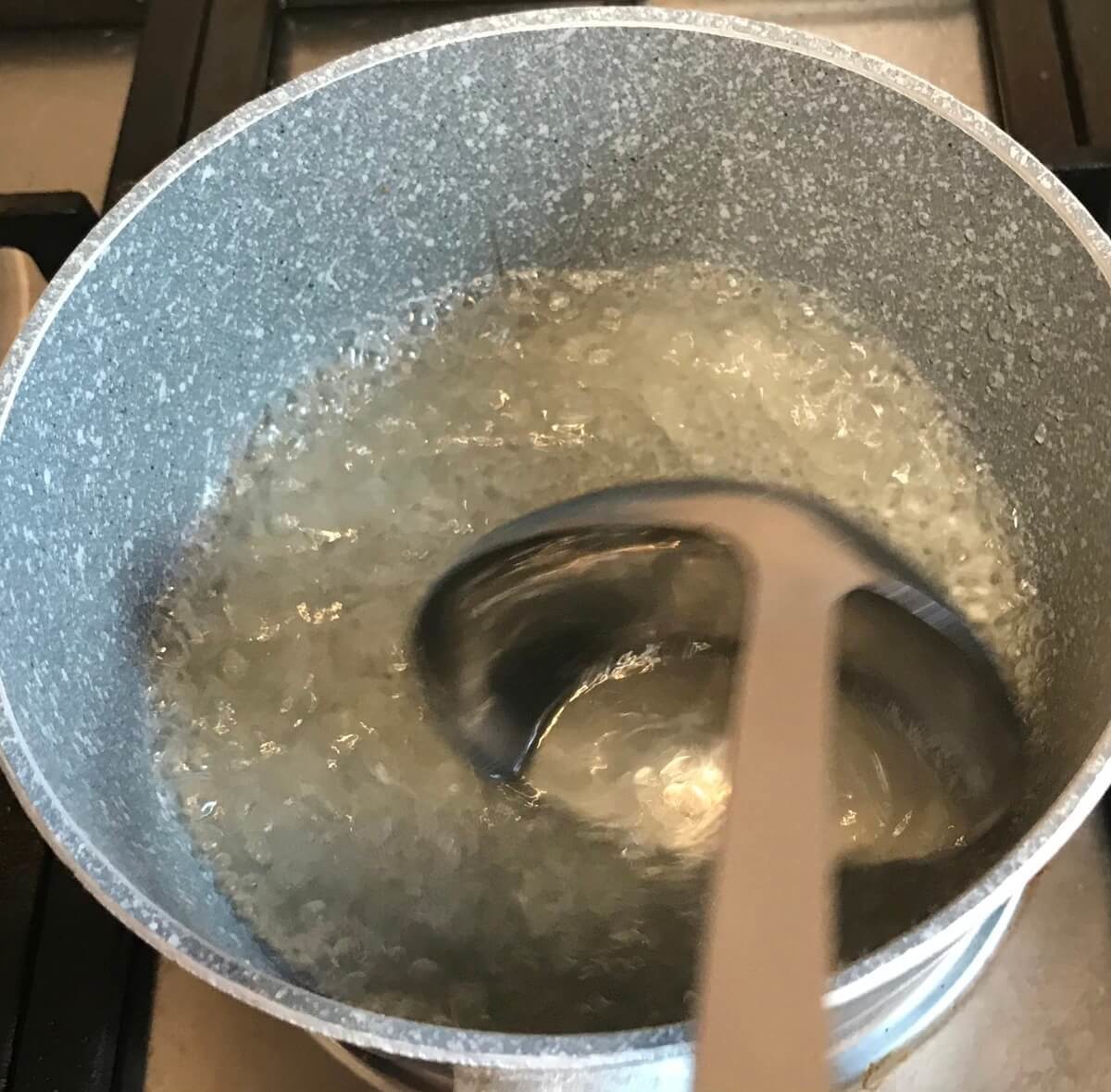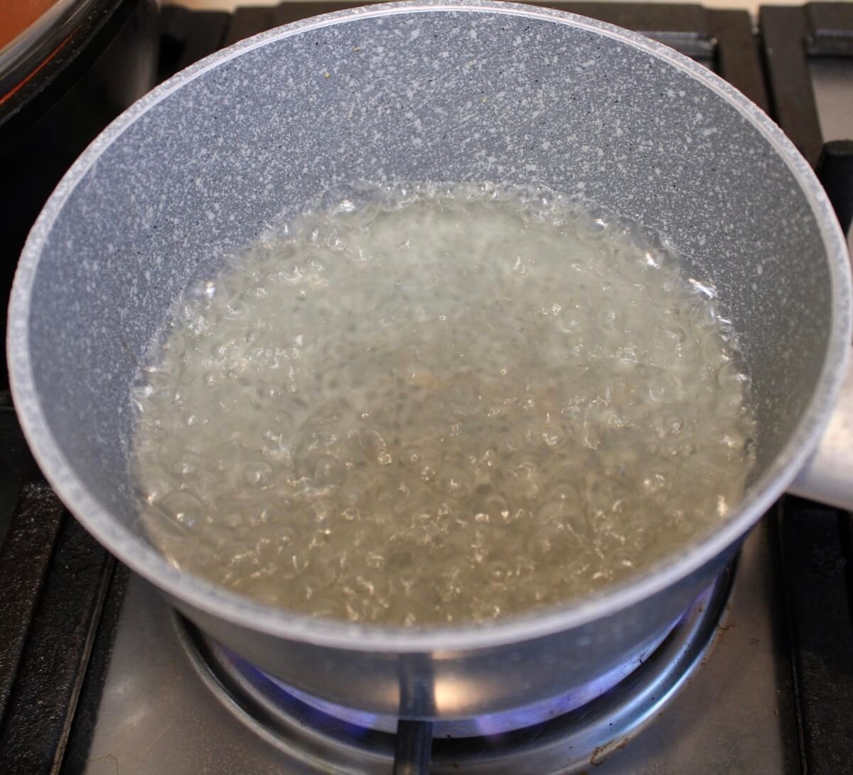 「卵スープ」レシピ①スープを沸騰させ、火を止める