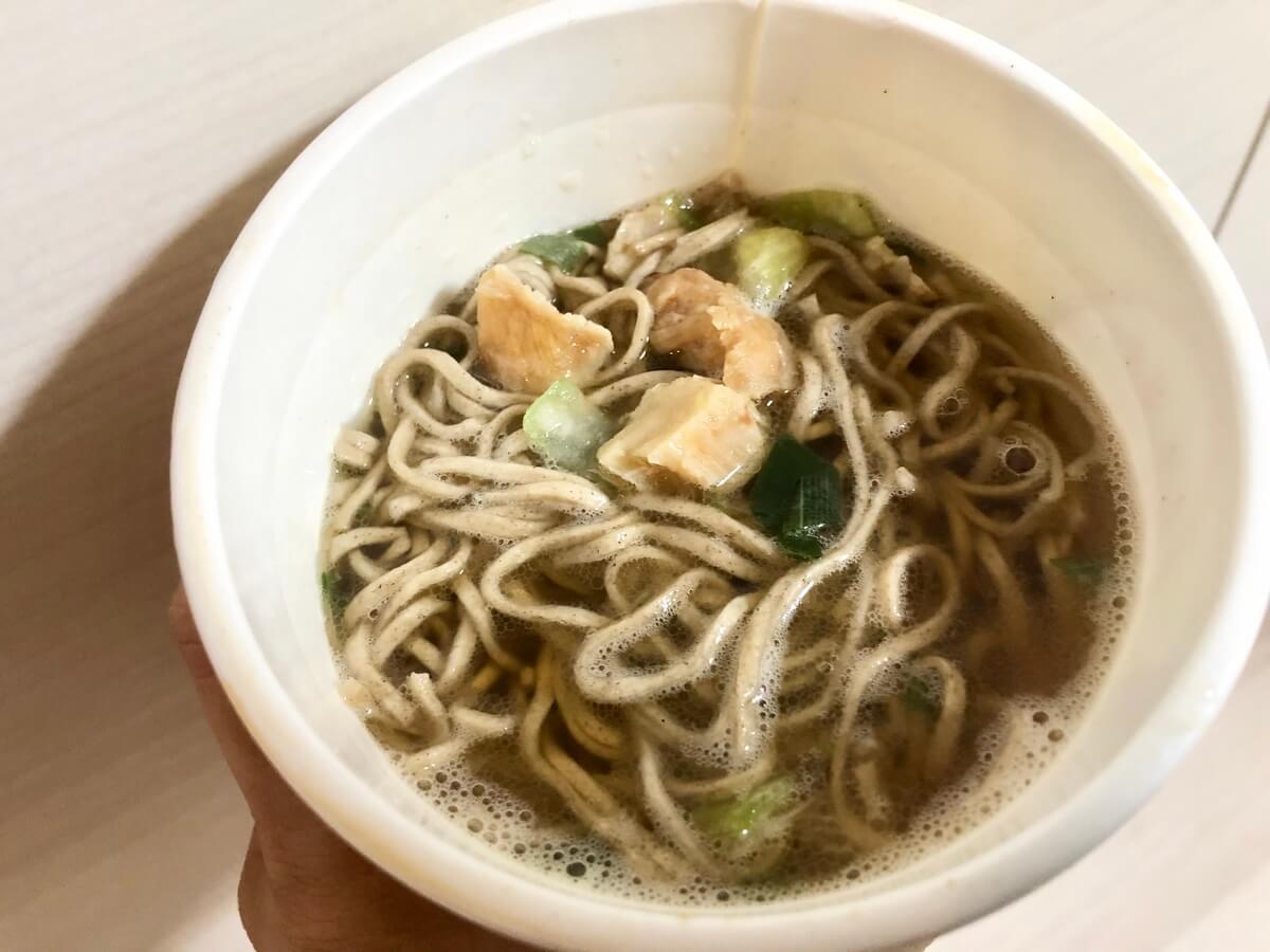 なにより驚いたのは、カップ麺なのに蕎麦がまっすぐなことです。これは視覚的なものもありますが、なにより口に入れたときに感触で気づきました。カップ麺特有のちぢれ方がありません。